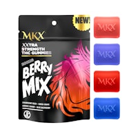 This pack contains a mix of our Strawberry Kush, Ganja Grape, Chronic Cherry, and Blazin' Blue Raspberry gummies. MKX is the #1 gummy brand in the state, and our gummies are always made using premium distillate. We believe our patients deserve the best, and MKX was founded on the idea of patients over profits. Our gummies are available in 100mg and 200mg sizes. We also have live hash rosin, deep sleep, and fast-acting gummies! ALL FLAVORS: Blazin' Blue Raspberry | Cali Lime | Canna Mango | Chronic Cherry | Ganja Grape | Gorilla Grapefruit | Green Apple | Juicy Watermelon | Lemon Haze | Pineapple Express | Strawberry Kush | Tangerine Dream GLUTEN FREE NO MILK, EGGS, SHELLFISH, TREE NUTS, PEANUTS, OR WHEAT WERE USED DURING PRODUCTION OF THIS PRODUCT. CONTAINS HIGHLY REFINED COCONUT OIL (NOT CONSIDERED AN ALLERGEN)