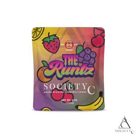 Society C's The Runtz is a potent Hybrid, a fusion of Zkittlez and Gelato, delivering a smooth and uplifting experience. With a terpene profile featuring Limonene, Linalool, and Myrcene, it boasts a vibrant aroma of citrus, berry, and tropical notes. Known for its euphoric and relaxing effects while sparking creativity, The Runtz is an ideal strain for an inspired and blissful escape.