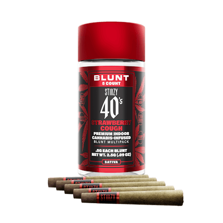 STIIIZY 40’s Mini Blunts Multipack is filled with premium grown STIIIZY cannabis and packed in individual glass vials to maintain freshness and potency. Each 40’s Mini Blunt is rolled with 100% tobacco free, kief dusted hemp wraps which packs a flavorful and potent punch with every exhale, and the tightly secured custom glass tips have been perfected to provide an amazing and consistent burn every time. The STIIIZY 40’s Mini Blunts Multipack is reinventing your high experience by being one of the first to introduce 40% THC and total cannabinoids potency with special live resin infusion. STRAWBERRY COUGH TASTE: Sweet, Strawberry, Fruity FEELING: Creative, Energizing, Euphoric DESCRIPTION: World renowned for its delicious flavor, our Strawberry Cough 40’s will leave you feeling energized and uplifted with the sweet taste of fresh strawberries straight from the field.