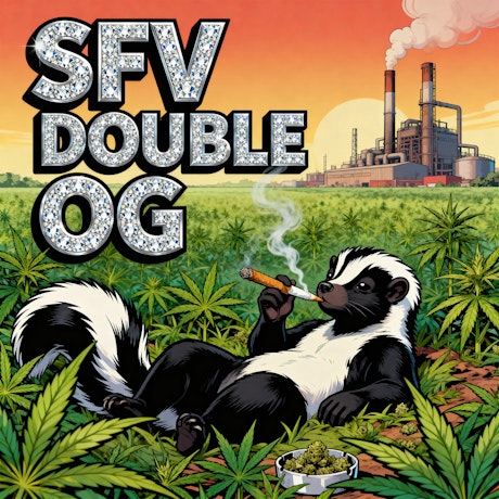 SFV Double OG (San Fernando Valley Double OG) is a classic indica-leaning strain known for its bold pine, earthy, and citrus aroma with spicy herbal undertones. It delivers smooth, powerful effects that start with calming mental clarity and gradually transition into deep physical relaxation. With strong potency and a robust flavor profile, SFV Double OG is a popular choice for evening use and for experienced consumers seeking heavy-hitting, long-lasting effects.