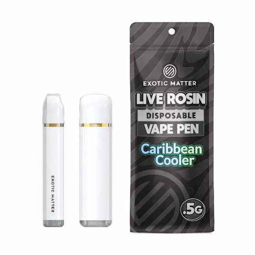Exotic Matter Caribbean Cooler Hash Rosin Disposable delivers smooth, solventless vapor in a convenient all-in-one device. Made with premium hash rosin, it features bright, tropical flavor notes with a clean, natural finish. Designed for consistent potency and easy use, it’s ideal for consumers looking for high-quality rosin in a portable format.