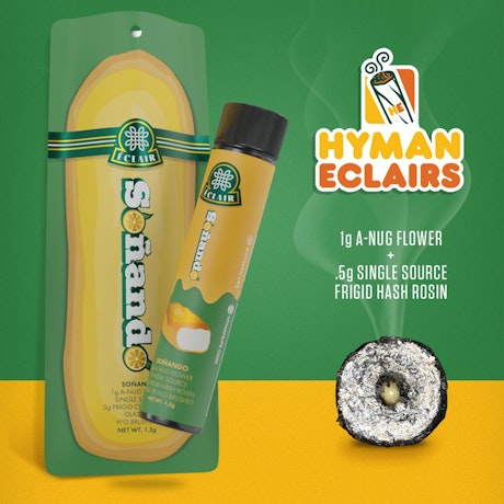 The new fan fave, made fresh to order. Infused with .5g Single Source Frigid Hash Rosin, rolled with our marquee strains to perfection with our custom engineered glass tip, sealed with H2O for a perfect HY. ?Soñando | HYMAN x Rabid Hippie Strain Type: Sativa Aromas: Fruity, Sweet, Herbal Flavors: Citrus, Orange, Berry Experience: Creative, Energizing, Happy