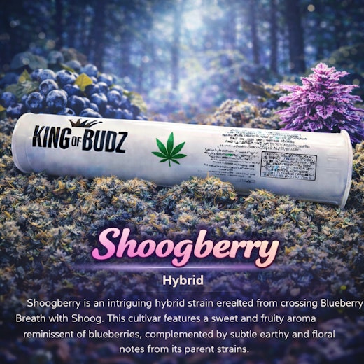 Shoogberry is an intriguing hybrid strain resulting from crossing Blueberry Breath with Shoog. This cultivar features a sweet and fruity aroma reminiscent of blueberries, complemented by subtle earthy and floral notes from its parent strains.