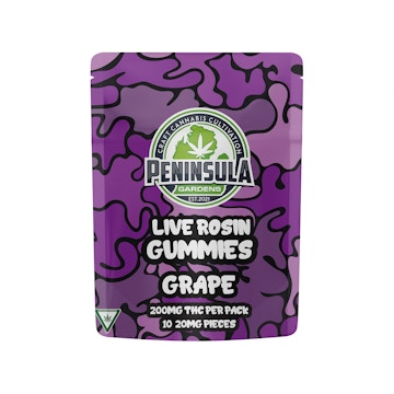 Elevate your edible game with Peninsula Gardens' 200mg Live Rosin Gummies. Made with solventless, full-spectrum live rosin, these gummies deliver a clean, terpene-rich high that captures the essence of the plant. Potent, flavorful, and crafted for consistency, they’re perfect for those seeking a true-to-flower experience in edible form. Ideal for evening vibes, creative boosts, or deep relaxation.