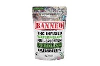 Embark on a tantalizing journey with BANNED Edible Co's latest creation – Full Spectrum NERDLESS gummies, a revolutionary twist on their beloved banned products. These meticulously crafted delights promise a fusion of iconic fruit flavors, ensuring an explosion of taste on your palate with a smooth, NERDLESS finish. Specially designed for the budget-friendly consumer, these gummies uphold BANNED's commitment to unwavering quality, rich flavor, and potent effects. Experience the BANNED Effect today by indulging in these delectable treats, brought to you by the distinguished recipient of the High Times Cannabis Cup Award. Pair this tantalizing sensation with our invigorating lemonade, a blend of zesty, tangy citrus notes harmonizing with the crisp, refreshing essence of summer. Each bite of these gummies and sip of our revitalizing lemonade offers a journey back to the sunlit days of childhood, creating a tartly sweet and revitalizing experience that will linger on your taste buds. Effects: Precisely dosed at 50mg of THC in each gummy, the perfect dose to relax and send a user into a relaxing haze of bliss. These gummies are great for winding down and chilling out.