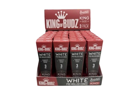 King Of Budz x Beamer 3-Pack king size French white pre-rolled cones. -Gmo free -Vegan -Organic Arabic gum