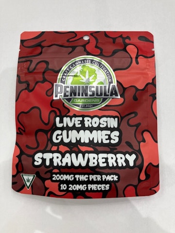Elevate your edible game with Peninsula Gardens' 200mg Live Rosin Gummies. Made with solventless, full-spectrum live rosin, these gummies deliver a clean, terpene-rich high that captures the essence of the plant. Potent, flavorful, and crafted for consistency, they’re perfect for those seeking a true-to-flower experience in edible form. Ideal for evening vibes, creative boosts, or deep relaxation.