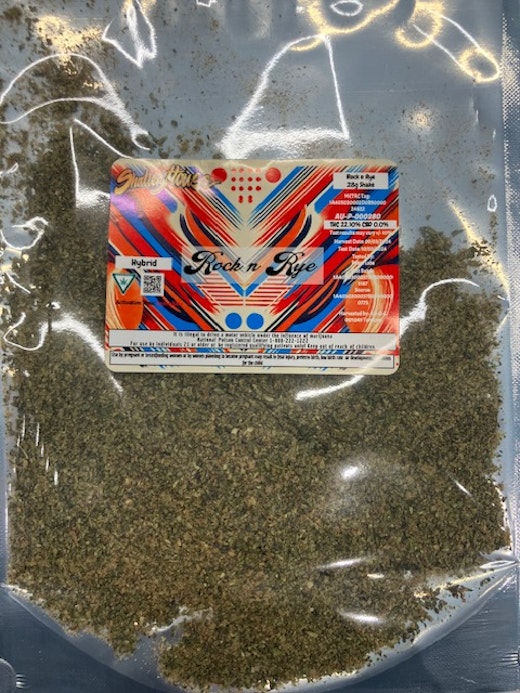 Introducing Shatter House - 28g Prepack Shake - Rock n Rye, a premium hybrid cannabis flower that offers a balanced experience of relaxation and creativity. This strain is a delightful blend of Lemon Cherry Gelato and Sunset Sherb BX, known for its uplifting and calming effects. Users report feeling calm, happy, and relaxed, making it ideal for stress relief and anxiety management. The flavor profile is rich with citrus and sweet undertones, thanks to its dominant terpenes like LIMONENE and MYRCENE. With a THC content of 22.1%, this flower is perfect for both recreational and medical use. Dried cannabis flower is primarily ingested via inhalation. Activation time is roughly about 5 minutes and can last up to a few hours.