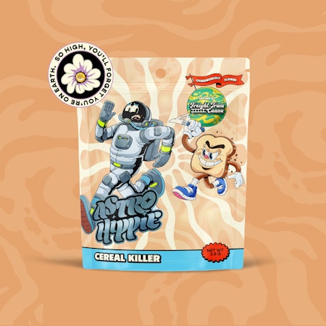 Astro Hippie x Freight Train Canna Cereal Killer is a 3.5-gram prepack of premium flower with a sweet, cereal-inspired terpene profile and smooth smoke. It delivers flavorful, balanced effects that start uplifting and settle into relaxed calm. Crafted for quality and consistency, it’s ideal for consumers seeking a tasty, well-rounded experience.
