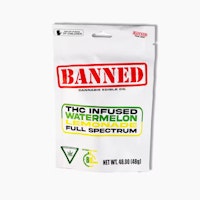BANNED 200mg Watermelon Lemonade Gummy Clusters Be engulfed in the tantalizing embrace of our Full Spectrum THC-infused Watermelon Lemonade Gummy Clusters, bursting with zesty citrusy notes that create a tartly sweet and juicy symphony, dancing vivaciously on your palate. This summery elixir, as vibrant and refreshing as a tropical breeze, enchants with its sparkling and mouthwatering allure—a perfect blend of ripe succulence and lively flavors. With a chewy yet non-sticky texture and the signature infusion of Nerds at the center, these Watermelon Lemonade Gummy Clusters offer an attention-to-detail experience that invites you to immerse yourself in the world of cannabis through the lens of invigorating watermelon lemonade delight. Visit your favorite dispensary and experience the BANNED effect today! Effects: Precisely dosed at 50mg of THC in each gummy, the perfect dose to relax and send a user into a relaxing haze of bliss. These gummies are great for winding down and chilling out.