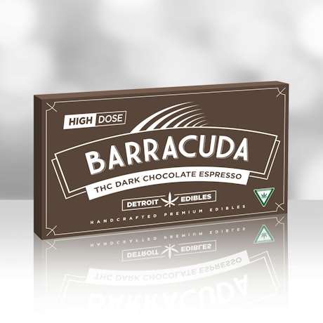 The NEW Dark Chocolate Espresso Barracuda Bar from Detroit Edibles is a decadent addition to our line up of THC infused chocolate. Smooth dark chocolate produced from 65% Belgian Chocolate, combined with rich espresso flavors, and the purest distillate from our very own Michigan-made Cannalicious Labs, our espresso dark bar is sure to be your new preferred mocha coffee treat.