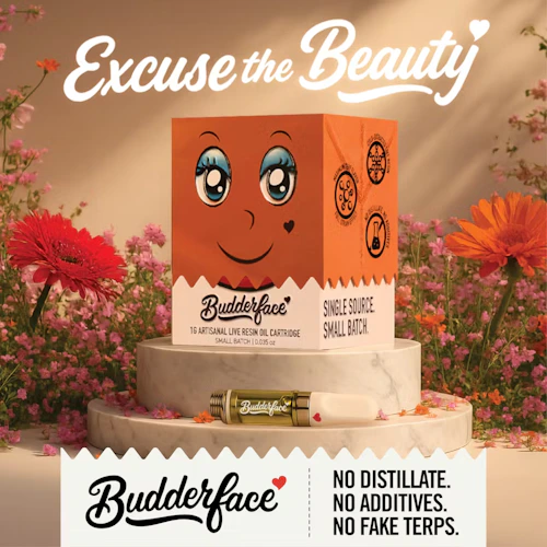 Don’t let the name fool you. Budderface is a total knockout. Born and raised on Detour Farms in Northern Michigan, Budderface is built on one promise: deliver the cleanest, loudest, most authentic live resin carts on the market. Every cart is 100% strain-specific live resin, single source, and small batch, never cut with distillate, never mixed wi...