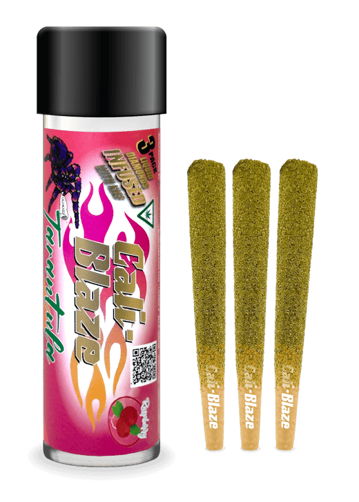 Infused with quality flower, terpenes and liquid diamonds - the Cali-Blaze infused line of pre-rolls comes in singles of 1.2g and 3-packs that are available in an array of flavors. Tarantulas boast all 21 flavors you love in the Cali Blaze infused line, but now also dusted in kief.