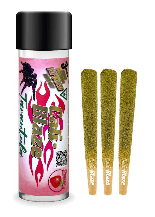 Infused with quality flower, terpenes and liquid diamonds - the Cali-Blaze infused line of pre-rolls comes in singles of 1.2g and 3-packs that are available in an array of flavors. Tarantulas boast all 21 flavors you love in the Cali Blaze infused line, but now also dusted in kief.