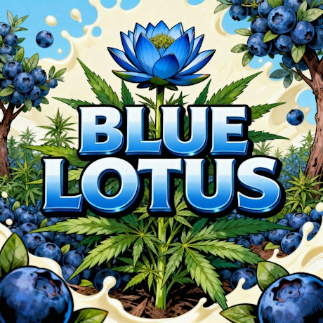 Blue Lotus is an indica dominant hybrid strain created through crossing the potent Snow Lotus X Blueberry strains. This bud is a specialty strain found mainly in the western parts of the United States and is infamous for its jaw-dropping gorgeous appearance. Blue Lotus buds have super lumpy forest green popcorn-shaped nugs with vibrant blue undertones, rich amber hairs, and a super thick sparkly coating of tiny white crystal trichomes. Each bud is super sticky to the touch and releases a sweet vanilla blueberry aroma as they are pulled apart and burned.