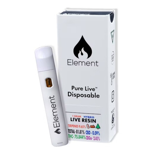 Free of distillate, botanical terpenes and additives, Element Pure Live disposables contain 100% premium Live Resin concentrate. Element Pure Live disposables provide a full-spectrum experience and offer a strong, strain-specific true-to-flower flavor profile.