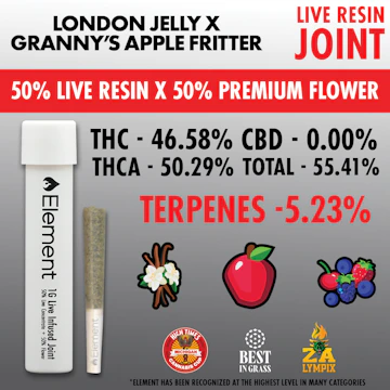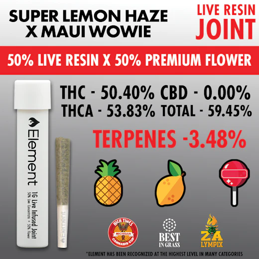 Buy Element x Ghost Cannabis - 1g Live Resin Joint - Super Lemon Haze x Maui Waui Pre rolls Cannabis | Monroe, Michigan
