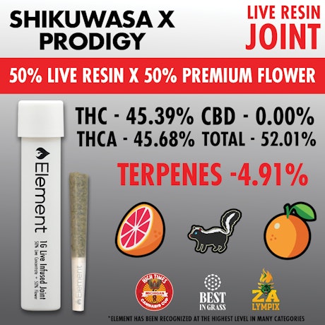 Element x Great Lakes Kush - 1g Live Resin Joint - Shikuwasa x Prodigy