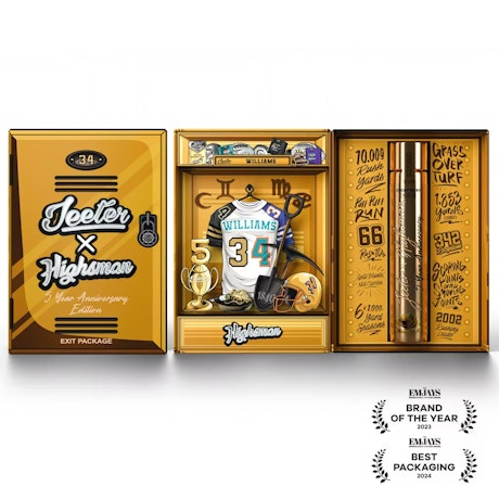 JEETER was born in the city & surburban streets of South Florida. The name “Jeeter” was a catchy slang within the local culture that was the alternative name for a joint. The slogan was quickly coined, “Pass the Jeeter” and became common language to our crew! Fast forward to a decade later and we have brought Jeeter to life in the California canna...
