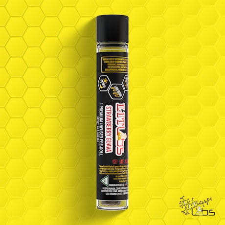 This 1.2g pre-roll is infused with live resin and CBGa bubble hash for an extra potent experience. Strawberry Guava is an indica dominant hybrid strain (70% indica/30% sativa) created through crossing the powerful Strawberry Banana X Papaya strains. Named for its mouthwatering flavor, Strawberry Guava packs a heady and relaxing high that will have you feeling lifted for hours on end. Like its name suggests, Strawberry Guava packs a sweet and fruity strawberry flavor with hints of tropical guava upon exhale. The aroma is very similar, although with a dank pungent effect that fills any room with its heavy stench as the nugs are broken apart and burned away.