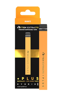 Runtz (Hybrid) - Flavor = fruity candy + tropical citrus + sour berries. Long-lasting functioning high. Premium Distillate + Live Resin Terpenes 1-gram rechargeable disposable vapes are perfect for those that are on-the-go and that prioritize convenience. Each flavor is created with Premium distillate + Live Resin terpenes. We hold ourselves to a high standard of quality and a high standard of potency. Mitten + PLUS Disposables empower customers to reach new highs.