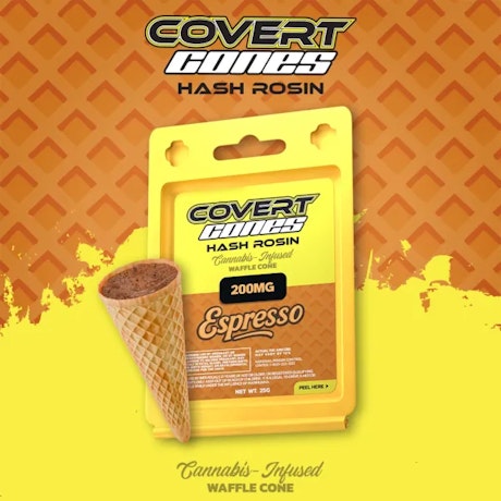 Espresso I 200mg Hash Rosin Cone A refined take on infused indulgence. Covert Cones™ pair crisp sugar cones with a rich chocolate center, infused with premium solventless hash rosin to deliver 200mg THC per cone. Crafted with intention and consistency, each cone offers a dessert-forward flavor profile balanced by smooth, full-bodied effects. Bold espresso blended straight into rich milk chocolate for a smooth, coffee-forward treat. Available in 7 carefully curated flavors, Covert Cones™ are designed for those who appreciate craftsmanship, flavor, and potency in one discreet treat.
