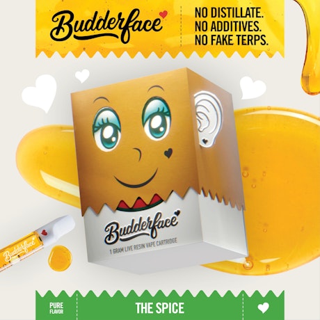 Don’t let the name fool you. Budderface is a total knockout. Born and raised on Detour Farms in Northern Michigan, Budderface is built on one promise: deliver the cleanest, loudest, most authentic live resin carts on the market. Every cart is 100% strain-specific live resin, single source, and small batch, never cut with distillate, never mixed wi...