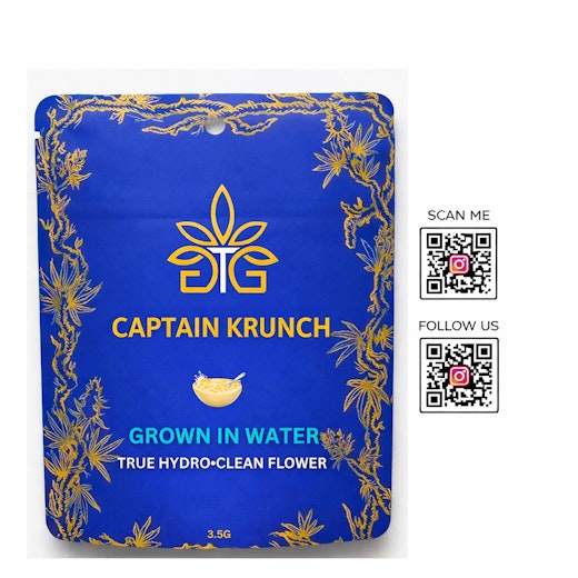 CAPTAIN KRUNCH is Grown 100% in WATER which is the CLEANEST method of cultivation. It true hydroponic flower. It is an evenly balanced hybrid (50% indica/50% sativa) and delivers a heavy, relaxing, and euphoric high. The strain features a pungent aroma of gas, sweet fruit, and pepper, with a creamy, minty, and gassy flavor profile.