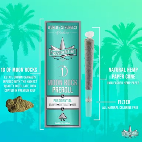 Welcome to Presidential, Home of the World’s Strongest Cannabis Products. We are committed to bringing the most innovative cannabis products to the market, with a focus on a standard of excellence, reliability and customer service. At Presidential we are renowned for our Infused Moonrock Prerolls which are known for being “The World’s Strongest Pr...