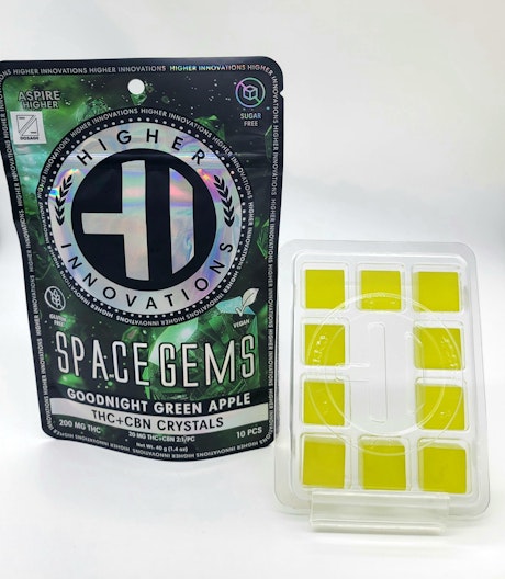 Space Gems are sugar free, isolate infused, lozenge gems. A product that started in the legacy market to bring much needed relief to patients that can't consume large amounts of sugar and are looking for an alternative to the normal products offered in the market. When sublingually ingested the users will see a shortened activation time. In the Space Gems line up Higher Innovations currently have 5 flavors available with a wide range of effects. Goodnight Green Apple is a 2:1 lozenge containing split amounts of THC and CBN, designed specifically for unwinding at night and getting a fuller sleep. Each lozenge contains 20mgs of THC and 10mgs of CBN. Split lozenge in half for a 10mg THC and 5mg CBN serving. These are our version of a sleep aid lozenge.