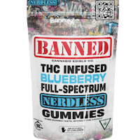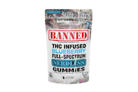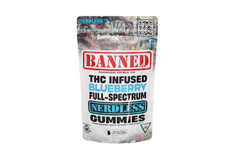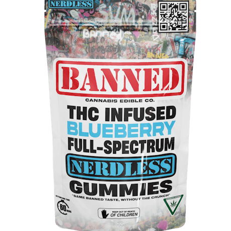 Indulge in the delectable world of Full Spectrum NERDLESS gummies by BANNED Edible Co, where the same beloved Banned products now offer an enticing twist. Meticulously crafted for unparalleled flavor without sacrificing potency, these iconic fruit-flavored treats promise an explosive taste sensation on your tastebuds, culminating in a smooth, NERDLESS finish. Perfectly suited for the budget-friendly consumer, these gummies redefine excellence by seamlessly blending quality, flavor, and potency. Immerse yourself in the BANNED Effect by ordering this scrumptious creation today from BANNED Edible Co, a distinguished recipient of the High Times Cannabis Cup Award. Elevate your experience with the ultimate blueberry flavor, skillfully capturing the natural sweetness and a hint of tangy delight. This masterpiece encapsulates the essence of sun-ripened, summer-fresh blueberries, delivering an irresistible burst of flavor that transports you to sun-soaked orchards in every delightful bite. Effects: Precisely dosed at 50mg of THC in each gummy, the perfect dose to relax and send a user into a relaxing haze of bliss. These gummies are great for winding down and chilling out.