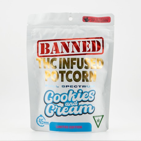 Snack time just got elevated. Banned’s 200mg Cookies & Cream Potcorn combines crunchy, fluffy popcorn with creamy cookies & cream flavor, all infused with 200mg of THC. Each bite delivers a sweet, smooth, and satisfying experience, perfect for sharing—or keeping all to yourself. Ideal for movie nights, chill sessions, or anytime you want a fun, flavorful edible with a potent kick.