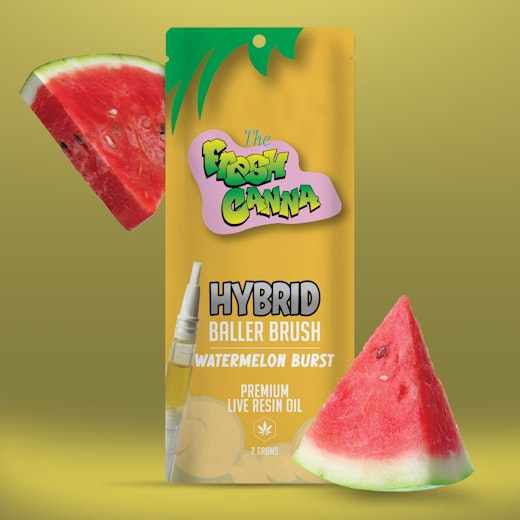 Fresh Canna 2G Live Resin Concentrate Brush – Watermelon Burst , Quench your cravings with Fresh Canna’s 2G Live Resin Concentrate Brush – Watermelon Burst, a juicy hybrid that floods the senses with fresh melon flavor and chill, balanced effects. This easy-to-use brush applicator allows you to infuse your dabs, joints, blunts, or bowls with pure, terpene-rich live resin. With sweet watermelon, tropical citrus, and a touch of earthiness, this strain brings an uplifting, euphoric buzz that smoothly transitions into a relaxing, body-melting calm. Whether you're enjoying a summer session or just unwinding, Watermelon Burst delivers pure, fruity fire.