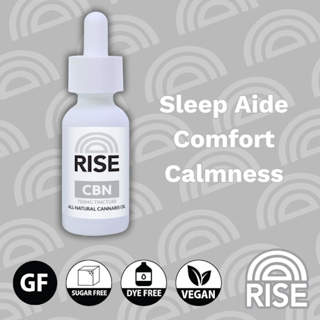 This CBN-only formulation helps to provide a non-euphoric experience of clarifying relaxation, mood-boosting, and improved gut health in a convenient tincture form. 750mg CBN per bottle and is THC free.? Each dropper is metered to allow for accurate dosing every single time. RISE CBN tincture does not contain any nut oil, is made with hemp seed oil (refined/golden) to offer a 100% cannabis-based tincture.