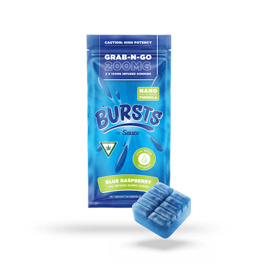 Our gummies are the best in the game! We have perfected the potency, flavor, ingredients, process and activation time. Bursts by Sauce are powered by our 2X Nano Live Resin, which is created using a proprietary process of both encapsulation and sonic energy to break down the molecule size. This makes the gummy hit faster, harder and smoother than any other gummy. Our gummies are also organic, and vegan and gluten free! Tailor your dosage according to your personal preferences or embark on an intensely elevated adventure by eating the entire gummy.