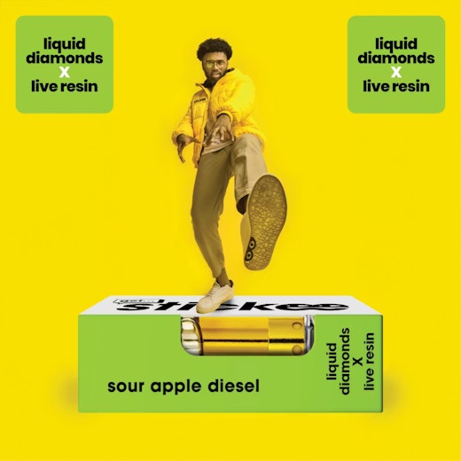 Sour Apple Diesel is sharp, loud, and impossible to ignore and the kind of flavor that grabs your tongue and refuses to let go. On the inhale, you get a burst of tart green apple: crisp, bright, and mouthwatering. On the exhale, that signature diesel bite rolls in, deep and earthy with just enough spice to keep it bold. It’s not candy-sweet; it’s complex, layered, and unapologetically loud. The high matches the flavor: fast-hitting, uplifting, and energizing at first, with a head rush that feels electric and creative. As it settles, the body buzz smooths out the edges, leaving you relaxed without being sedated. Thanks to live resin extraction, every puff preserves the full terpene spectrum