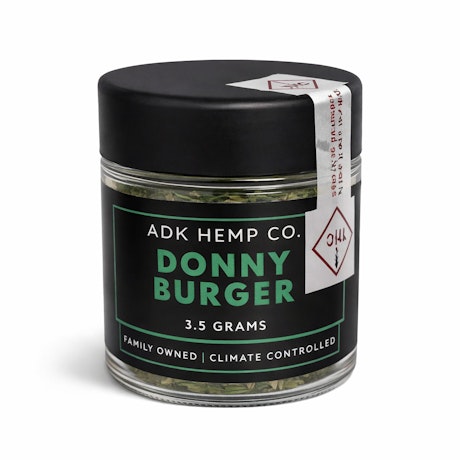 Donny Burger is an indica dominant hybrid strain and is an unforgettably dank delicacy rimmed with a savory funk. This strain has a stanky, ammonia-laced Brie cheese funk that oozes across a greasy garlic burger on top of a glistening puddle of sweet diesel — with an after taste of thick, dry pine that brings in a savory but fresh earthiness to cleanse the palate. Donny Burger leads you to happiness, as all good burgers do, and relaxes you into a calmness of both the mind and body. Its dominant terpenes are Myrcene, Limonene, and ß-caryophyllene.