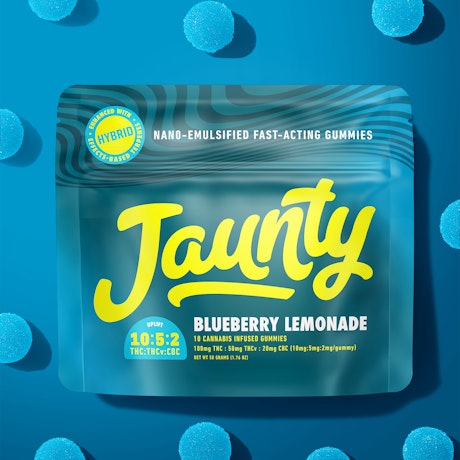 Jaunty knows how to put a little pep in your step, whenever you need it most. These energizing, fast-acting gummies are crafted with a blend of THC, THCv, CBC, and hybrid effects-based terpenes. This balanced profile is sure to elevate your mood, boost your energy, and enhance your focus - ideal for day-to-day adventures. Vegan, Gluten Free, and Fat Free, each Jaunty Gummy is infused with 10mg THC, 5mg THCv, and 2mg CBC, providing a perfect balance of effects and delicious flavor. Each gummy is nano-emulsified, allowing for a fast onset.