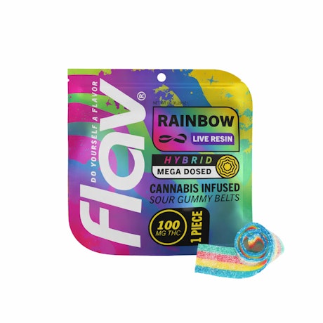 Flav - 100mg Live Resin Single Gummy - Rainbow Belts