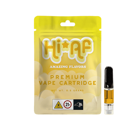 Hi*AF's Lemon Cake is a delectable infusion of ripe lemon and velvety icing flavors, which are expertly blended with premium-quality distillate, delivering an unforgettable symphony of flavor and aroma that embody the essence of fun fruitiness with every breath. -- Hi*AF vapes are a blend of premium-quality distillate with vivid, amazingly flavorful terpenes. When you get Hi*AF, the stars seem brighter and your tasty dreams take flight, with delicious Indica, Sativa, & Hybrid varieties to deliver an amazing experience & take you wherever you want to go.