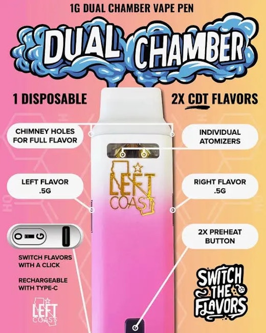 Left Coast - 1g Dual Chamber Disposable - Blue Dream x Monster Cookies